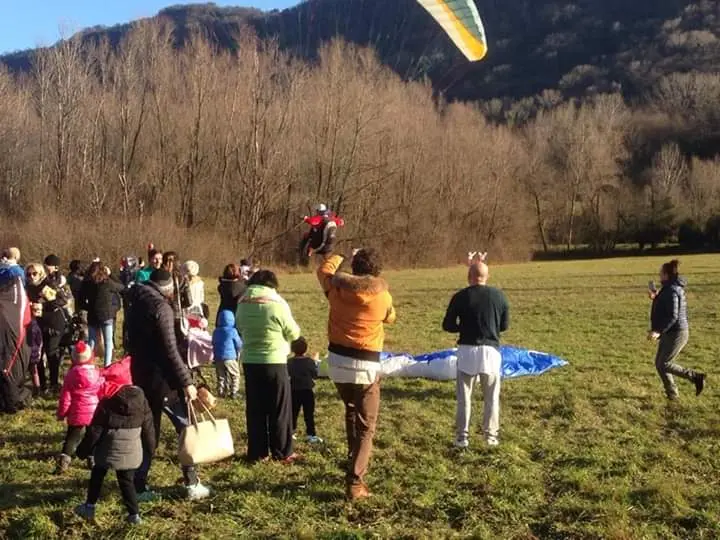 REVINE. I Babbi Natale arrivano dal cielo carichi di regali. È accaduto pochi giorni fa a Revine Lago. Vestiti di rosso, con tanto di parapendio, i Babbi Natale hanno portato caramelle e cioccolato ai bambini per festeggiare Santo Stefano.