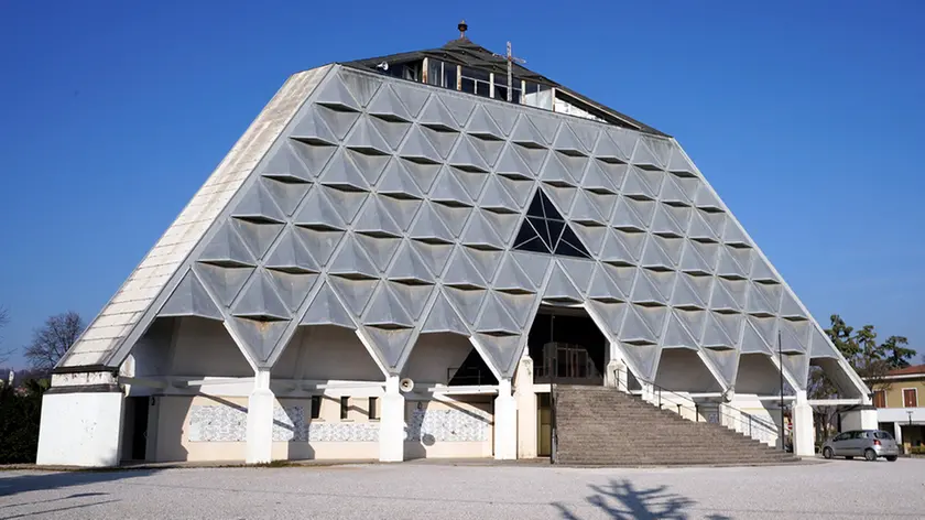 GIAVERA. Demolire il Tempio Regina Pacis, la chiesa chiamata anche la “Piramide” per la sua forma, che si trova in centro a Giavera. E costruire al suo posto un’altra chiesa, in un sedime diverso, riqualificando tuta quell’area centrale. È l’ipotesi a cui si sta lavorando a Giavera: per consentire ciò, il consiglio comunale ha modificato il grado di protezione della chiesa, altrimenti poteva solo essere costruita sullo stesso sedime.