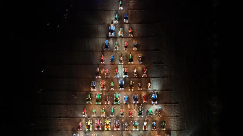 I trattori posizionati su tante file hanno formato il triangolo a rappresentare l'abete, le mietrebbie a formare la base e la punta da altri mezzi. Accesi mano a mano i fanali e lampeggianti, con i colori dei diversi trattori hanno animato la serata. Il filmato dall'alto con il drone è stato quello più spettacolare. L'occasione è stata per uno scambio di auguri e fare festa, ma anche per beneficenza. Il ricavato della manifestazione sarà infatti devoluto a famiglie bisognose.