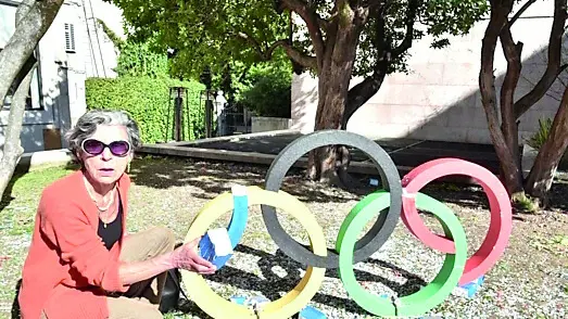Stefania Favretti, presente a Monaco 1972, accanto al simbolo distrutto