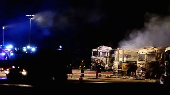 A suffragare tale ipotesi ci sarebbe il fatto che il rogo si sia sviluppato contemporaneamente da più focolai, divampando dall’interno delle cabine dei camion: ci sarebbero stati dunque più punti d’innesco e le fiamme non si sarebbero scatenate da una sola zona. Inoltre, secondo quanto si è potuto apprendere, nell’area di cantiere dov’erano parcheggiati i mezzi, sarebbe stato trovato aperto il cancello, altro elemento che confermerebbe la matrice dolosa.