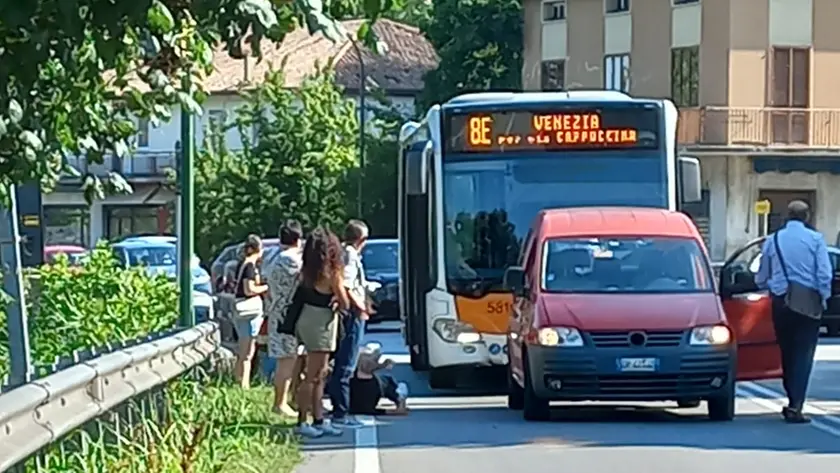Bus tampona un’auto sul Terraglio a Mestre, un ferito