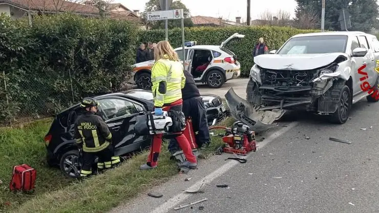 Caerano San Marco, carambola fra due auto: un ferito estratto dalle lamiere