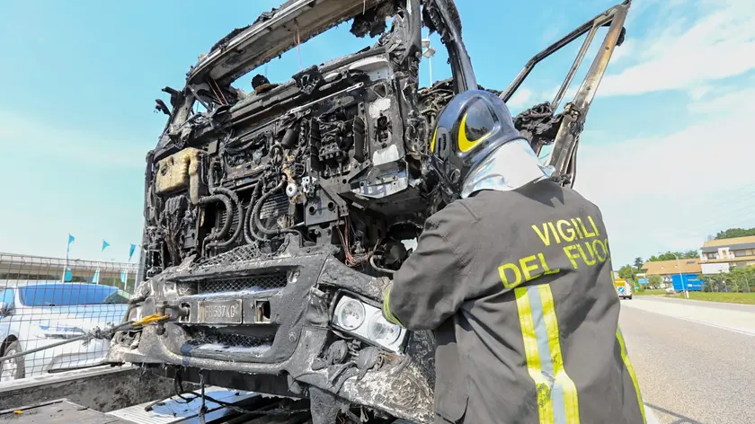 Un guasto all’origine dell’incendio che ha distrutto il mezzo pesante all’altezza del supermercato Cadoro