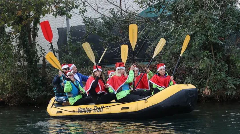 Una lunga scia scarlatta che ha trasformato il Sile in un palcoscenico natalizio d'eccezione.
