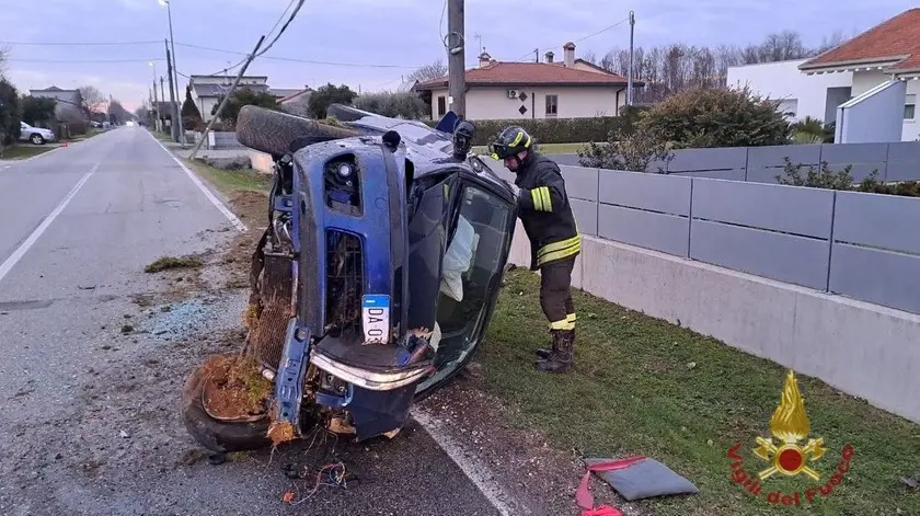 Castello di Godego, auto si ribalta e finisce contro un palo