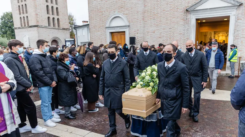 L'uscita del feretro dalla chiesa di Campolongo a Conegliano