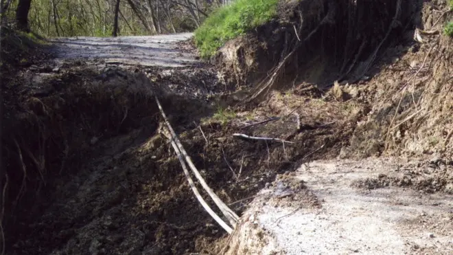 Oltre alla terra che ha cancellato la via d’accesso e che preme sulle pareti delle abitazioni, l’altro grande nemico è l’acqua. Il torrente di fango che sgorga da uno dei fronti della frana continua a riversarsi sul lato ovest dell’antica casa colonica. L’unico modo è di lasciare scorrere il flusso attraverso il piano terra di casa Polazzo, il cui restauro era stato concluso a dicembre. Una situazione che impedisce anche alle ruspe di entrare in azione per aprire una nuova via di accesso.