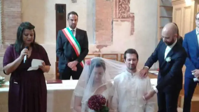È il caso di Andrea Pavan che sempre sabato a Santa Caterina ma nel pomeriggio, ha voluto sposare la sua Chantelle Atkins. Lei è australiana, di Melbourne. Nei dolci tratti orientali ricorda la mamma filippina ed è con il rito tradizionale “esotico”, sotto un velo candido a coprire i due promessi sposi, che i due si sono uniti in matrimonio con una cerimonia officiata dal sindaco Mario Conte, visibilmente emozionato («anch’io ho parenti in Australia dalla parte di mamma»).
