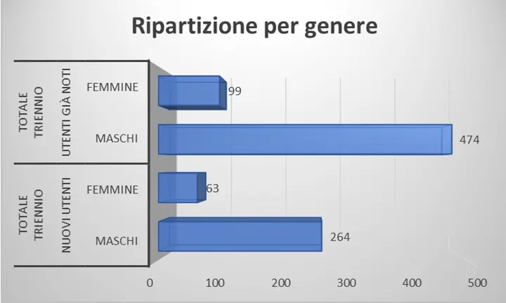 Nell’ultimo triennio sono stati presi in carico complessivamente, nei quattro ambulatori dedicati al gioco d’azzardo patologico, 894 pazienti