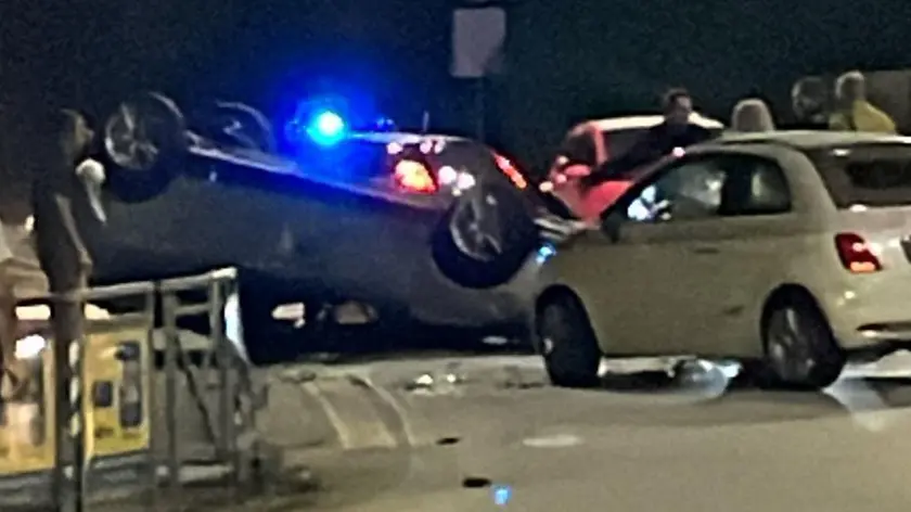 L’automobile capottata dopo la rocambolesca fuga di lunedì sera a Casale