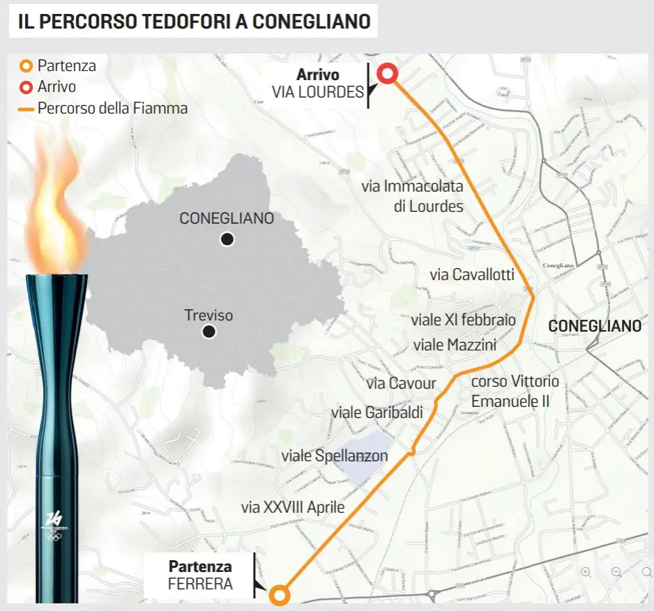 «Le Olimpiadi sono sicuramente un volano anche per il nostro territorio, considerando che Conegliano si trova tra Venezia e Cortina, che ha una stazione, l’uscita dell’autostrada, non è lontana dagli aeroporti di Venezia e Treviso, insomma è strategica - ha sottolineato l’assessore agli eventi, Claudia Brugioni - lo sport è un elemento fondamentale e abbiamo scelto di dare risalto a questa giornata, accompagnando in maniera importante la fiaccola verso la sua meta finale. Siamo riusciti a portare a Conegliano atleti che hanno scritto pagine importanti di sport e con il titolo “La fiamma dentro”, questi atleti racconteranno come lo sport è una fiamma che porta a sacrificare molto per ottenere risultati e riconoscimenti».