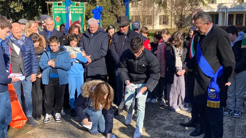 «Il loro ricordo deve vincere, rifuggendo i rigurgiti di ideologie fasciste», il messaggio del prefetto. Presente la figlia di Erminio, Nella: «Non ha mai voluto parlare di quello che aveva vissuto. Disse no al nazifascismo, fondamentale ricordare il suo esempio. Quando tornò, pesava 38 chili. In un campo trovò un compaesano con cui condivideva qualche pezzo di pane».