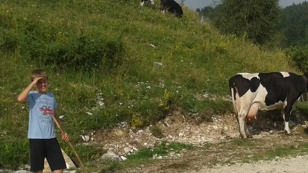 E poi c’è lui, quarta generazione, il più piccolo erede della storica famiglia di malghesi di “Malga Coston, da Quinto” a Borso del Grappa. Giovanissimo certo, eppure sembra esser già convinto di voler continuare a camminare sullo stesso sentiero battuto da bisnonno, nonno e papà. Luca Andreatta, 13 anni, esame di terza media appena concluso, pronto per il primo anno dell’istituto tecnico agrario, in vacanza non ha tempo da perdere in ciacoe. Insieme a papà e a mamma Stefania, da fine giugno a settembre, saluta la casa a valle, che si trova a Paderno del Grappa, per salire a quota 1.280 metri, su a Malga Coston. Mestiere dei genitori quello di gestire un piccolo agriturismo e mandare avanti la storica malga di famiglia: trentacinque ettari ai piedi di cima Grappa, con una sessantina di mucche al pascolo per produrre latte e formaggi tipici. Così quando scocca il tempo della stagione dell’alpeggio, Luca ha per sé giornate intere da trascorrere ad osservare il papà casaro alle prese con l’antica arte di trasformare il latte in pezze di Morlacco e Bastardo del Grappa. Tutte le mattine la sveglia per gli adulti di casa quassù suona sempre puntuale alle 5.30. Quanto basta per preparare fino a mezzogiorno i formaggi e la ricotta. La sveglia di Luca, come la campanella dei giorni di scuola, arriva più docile alle 8.30. Ogni giorno due ore trascorse al pascolo per tenere d’occhio una compagnia ben nutrita. Sessanta mucche “in trasferta”, dalla stalla giù in paese all’alpeggio: «Da grande vorrei continuare a fare il mestiere di papà. E lo dico perché mi piace sul serio», racconta Luca, “erede” del tesoro di famiglia, «durante il giorno osservo papà al lavoro che prepara il formaggio. E lo guardo anche quando la sera munge le mucche». Di tempo ce n’è a volontà per puntare gli occhi sul miracolo del latte che diventa formaggio: «Luca passa l’estate quassù con noi. Intanto guarda, osserva, impara», spiega mamma Stefania del più piccolo dei suoi tre figli, «anch’io ho imparato così il mestiere, da mio suocero. Si comincia facendo un sacco di domande». Pur in alta quota, le telefonate e i messaggi dagli amici e compagni di classe a Luca arrivano puntuali, non mancano mai: «Li sento sempre anche se fanno un po’ fatica a venire fin quassù», confida il piccolo malghese in erba. A valle, il più giovane aspirante casaro, è tornato da poco per ricevere stavolta un premio. La diciottesima “Rassegna dei formaggi del Grappa” ha visto Luca stringere la mano al decano dei malgari, Giovanni Carraro, il produttore più anziano di formaggi del Grappa. Tra lui e Luca c’è un salto di 65 anni di età.