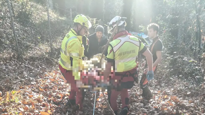 Complesse le operazioni di soccorso: il medico ha imbastito una calata con tecniche alpinistiche con un cordino di sicurezza, calando la barella fino alla strada sottostante
