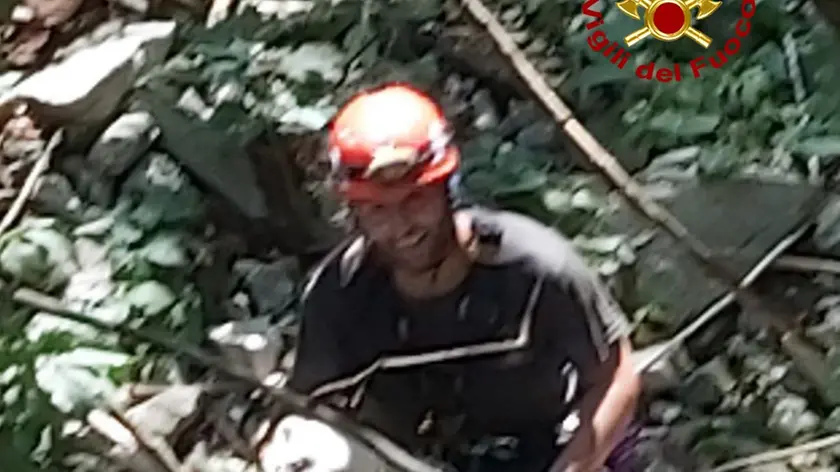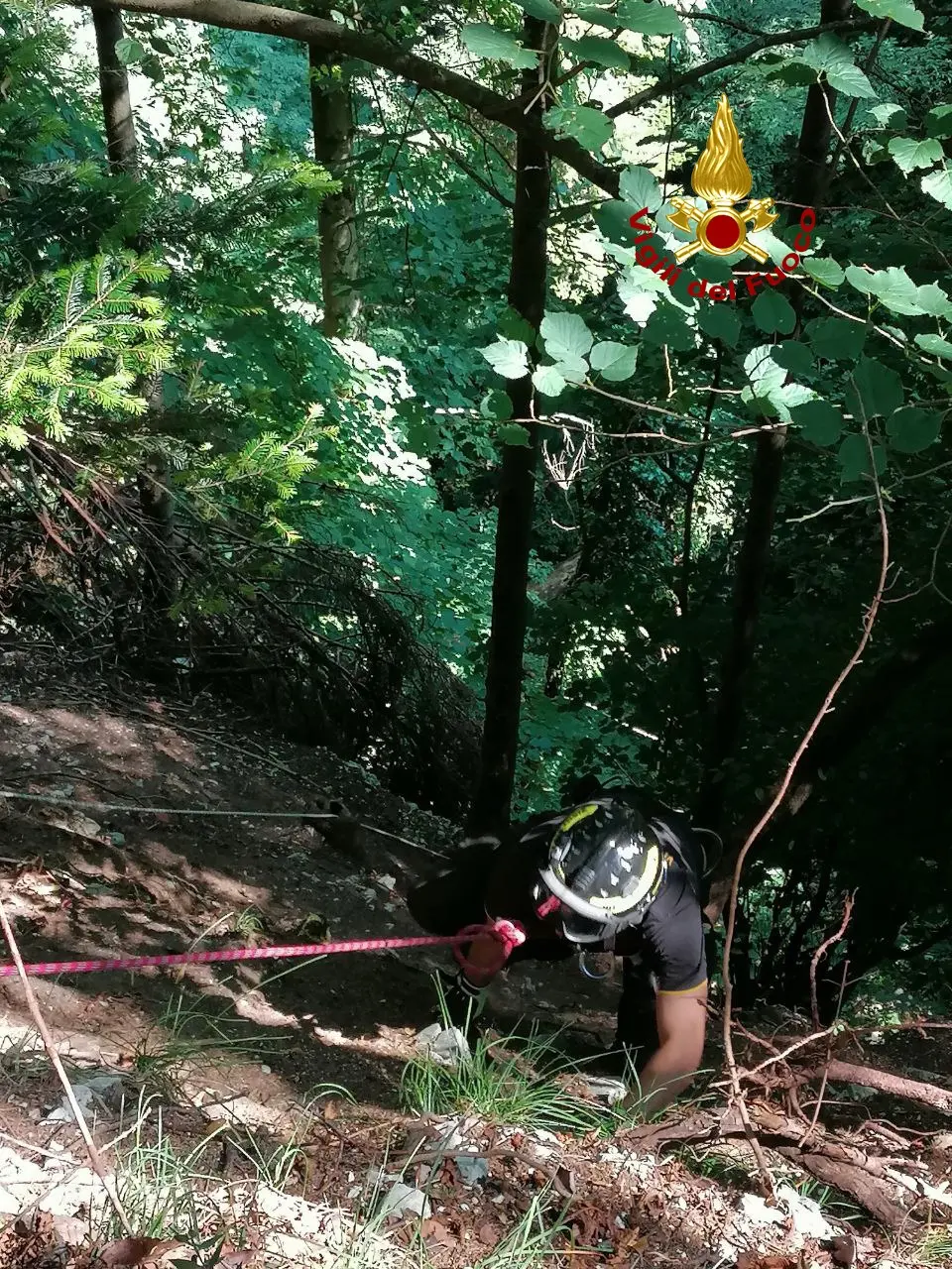 A Crespano si è allontanato dal padrone ed è caduto. I vigili del fuoco si sono calati nel dirupo e hanno recuperato Rei