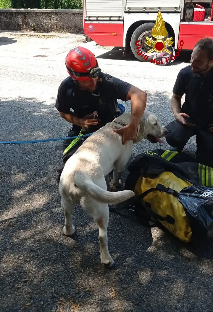 Labrador cade in un dirupo per 20 metri, recuperato dai pompieri