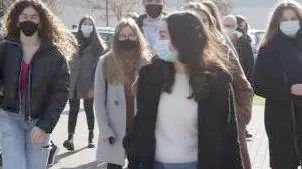 Studenti in uscita da una scuola superiore della città