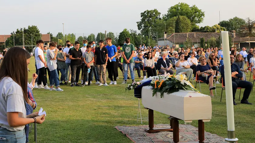 MASER. «Porteremo per sempre il tuo sorriso nel nostro cuore». C’era tutto il paese ieri pomeriggio nel campo da calcio di Crespignaga, per dare l’ultimo saluto alla quattordicenne Vittoria De Paoli, la ragazza i cui sogni si sono spezzati lungo l’asfalto sabato sera, all’incrocio tra le vie Rialto, Cal Nova e Borgata Grotta a Farra di Soligo.
