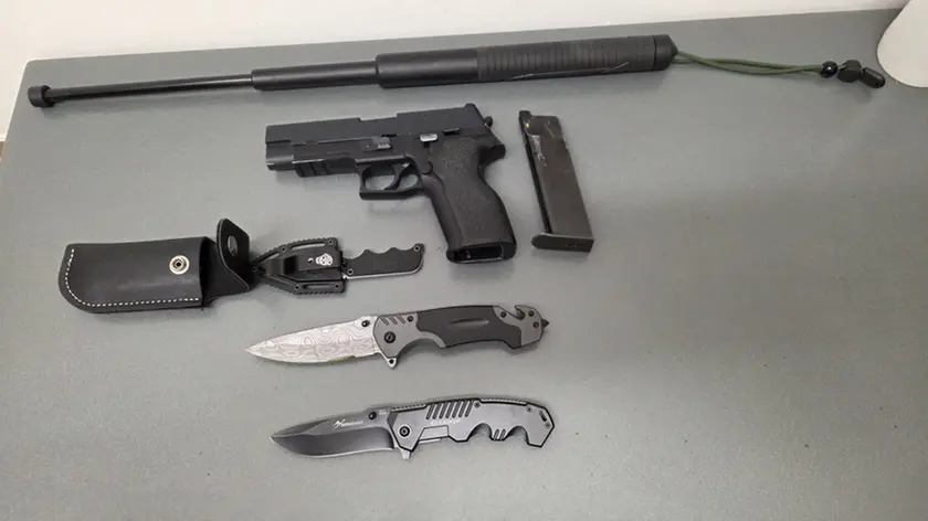Nel corso delle perquisizioni, i militari hanno rinvenuto e sequestrato diverso materiale. Nell’abitazione di uno dei due giovani italiani sono stati trovati un tirapugni, un coltello a serramanico lungo 12 centimetri e circa 45 grammi di hashish. Nell’abitazione dell’altro sono stati invece sequestrati una pistola semiautomatica a salve Sig Sauer, priva del tappo rosso, tre pugnali di varie dimensioni e un bastone telescopico tipo sfollagente, lungo circa 50 centimetri.