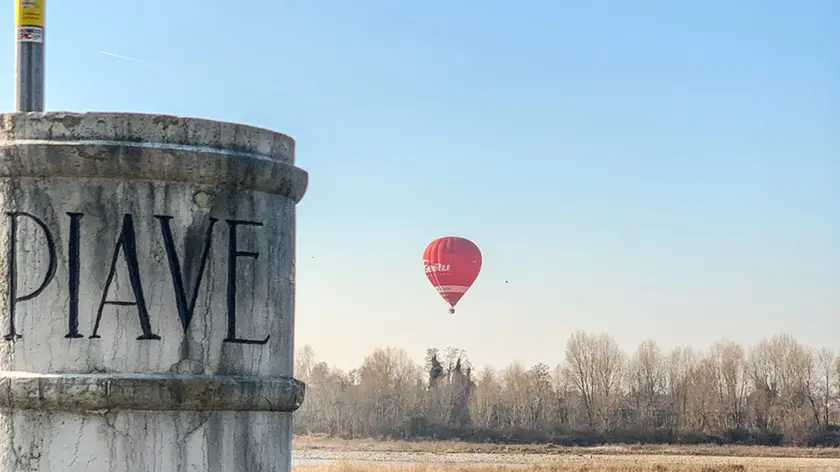 I balloon sono planati sul tempio votivo di Ponte della Priula e lungo il Piave