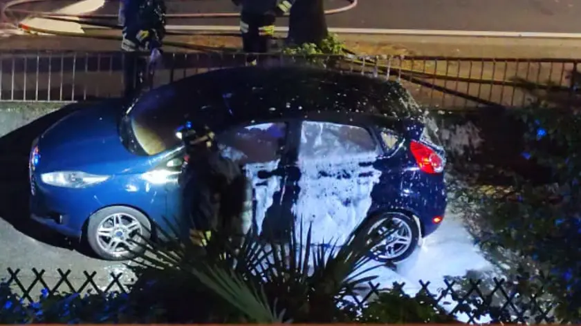 Il lunotto in frantumi, la vernice increspata dal calore, la carrozzeria deformata dalle fiamme. Se i vigili del fuoco non fossero intervenuti in temp