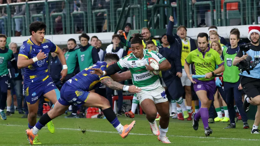 Il Benetton festeggia la vittoria contro le Zebre Parma nell’ultima gara di prima di Natale: a Monigo è 21-15 nella sfida del settimo turno dello United Rugby Champioship.