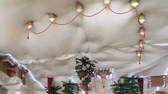 Sarmede innevata e capovolta. È la curiosa opera che si può ammirare sul soffitto del bar “4 amici” in piazza a Sarmede creata da Sabrina Pasin, consigliere comunale. «Il mondo sta andando a rovescio da qui l’ispirazione», commenta Pasin. L’opera sarà visibile fino a febbraio.