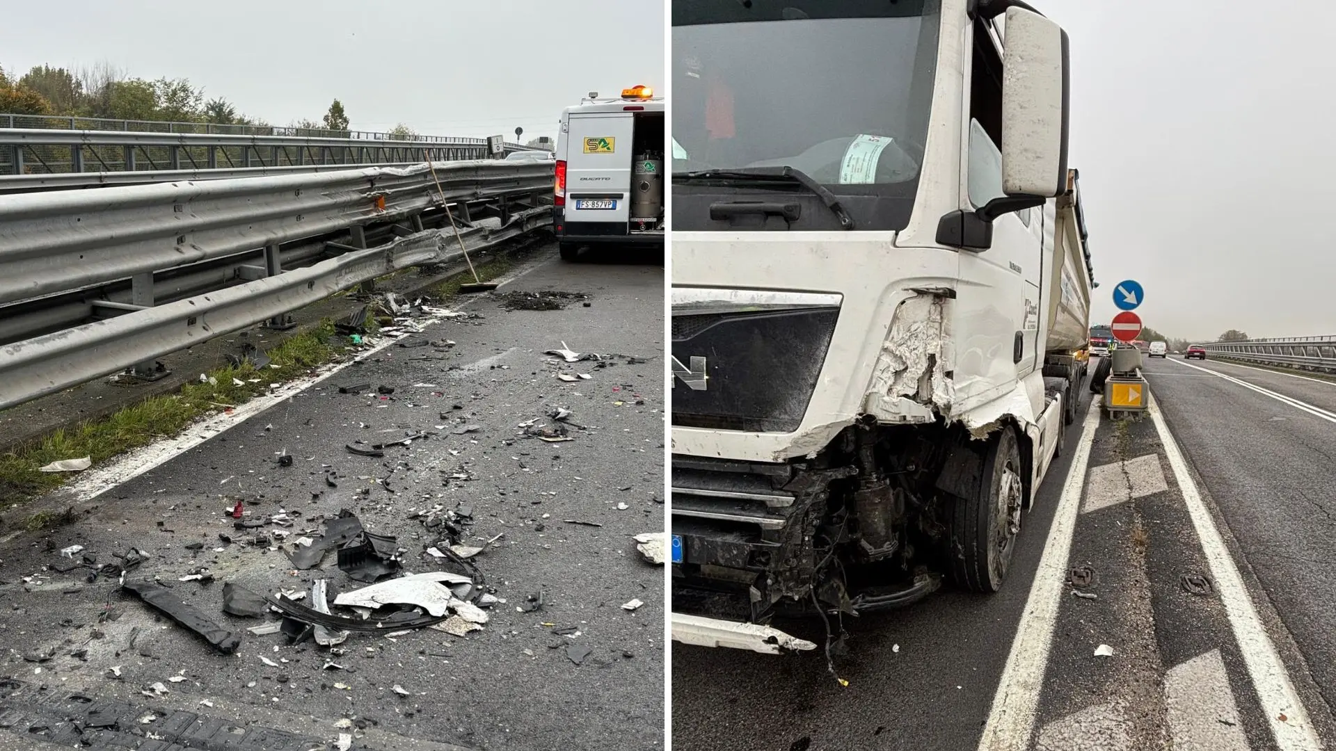 Incidente nella prima mattinata sul raccordo autostradale tra l'uscita di Fiume Veneto e lo svincolo di Cimpello. La coppia, di Treviso, viaggiava a bordo della vettura: i coniugi sono rimasti incastrati tra le lamiere, i vigili del fuoco hanno dovuto utilizzare le cesoie idrauliche per liberarli. Ferite lievi per l’autista del mezzo pesante
