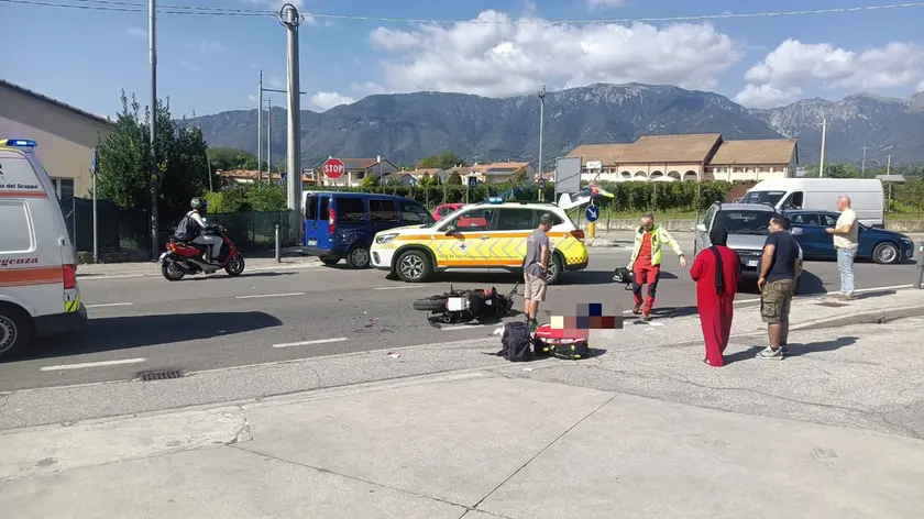 Incidente venerdì mattina a Fonte, in via don Luigi Ceccato. Un ragazzo di sedici anni è rimasto ferito. Il giovane stava procedendo in sella alla sua