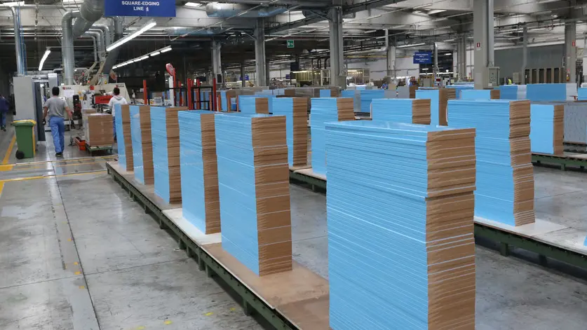 Nello stabilimento la linea realizzata con materiali riciclati: truciolare e pet, premiata per il design