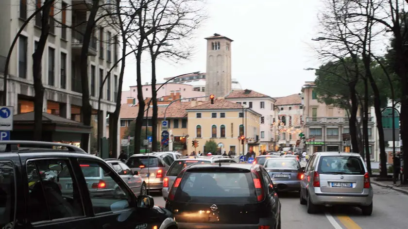 Traffico in via Roma a Treviso
