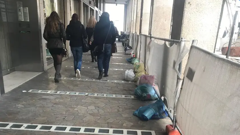 L’ultimo episodio ieri quando, fin dal primo mattino, il porticato su cui affacciano bar, negozi e portoni condominiali era seminato di rifiuti.
