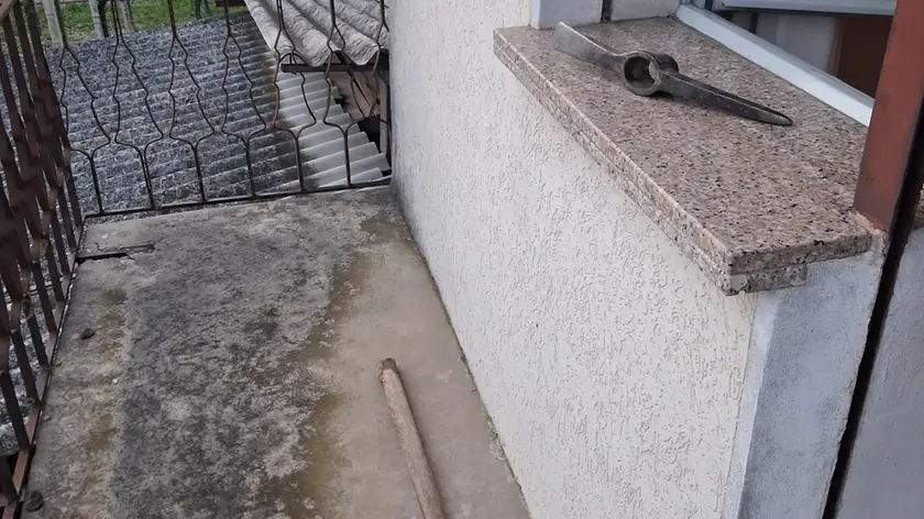 Il piccone usato dai ladri per estrarre la cassaforte dal muro dell’abitazione