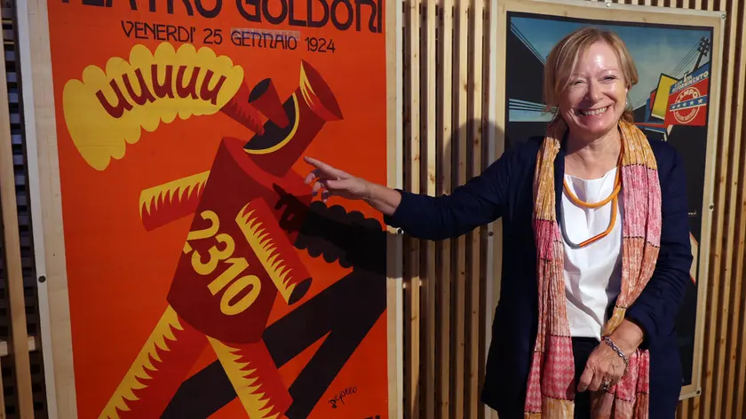 La direttrice del Museo Salce, Elisabetta Pasqualin, con un manifesto di Depero