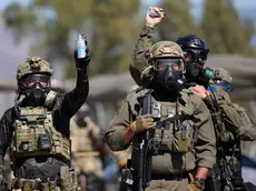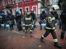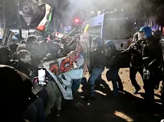 Forze dell'ordine li respingono con idranti e lacrimogeni