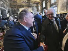 Stretta di mano e sorrisi con il sottosegretario Mantovano