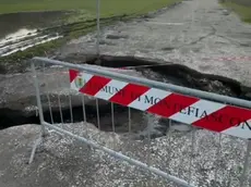 Maltempo, si apre una voragine su una strada nel Viterbese