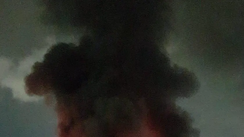 A fuoco capannone a Napoli, in cielo densa colonna di fumo