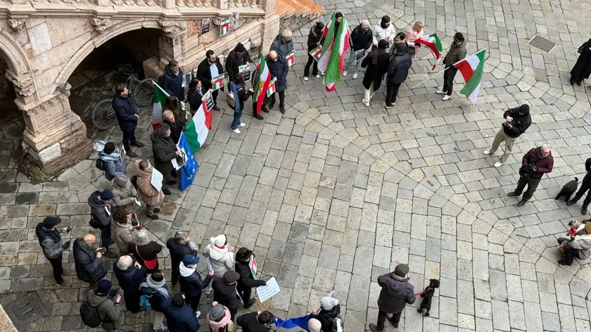 (ANSA) - VERONA, 06 GEN - "Iran per la libertà". È lo slogan del flash mob che si è tenuto questa mattina a Verona in Cortile Mercato Vecchio, sotto la scalinata del Palazzo della Ragione, a sostegno del popolo iraniano contro il regime teocratico. La manifestazione, promossa dalle Associazioni Italia-Iran e Italia-Israele, ha raccolto l'adesione trasversale di diversi movimenti politici (esclusi FdI e Pd) e di numerose associazioni, per ribadire la totale solidarietà alle proteste in Iran, arrivate alla seconda settimana, con la violenta repressione del regime clericale che ha già causato almeno 16 morti. Al flashmob ha partecipato anche il sindaco di Verona, Damiano Tommasi. (ANSA).