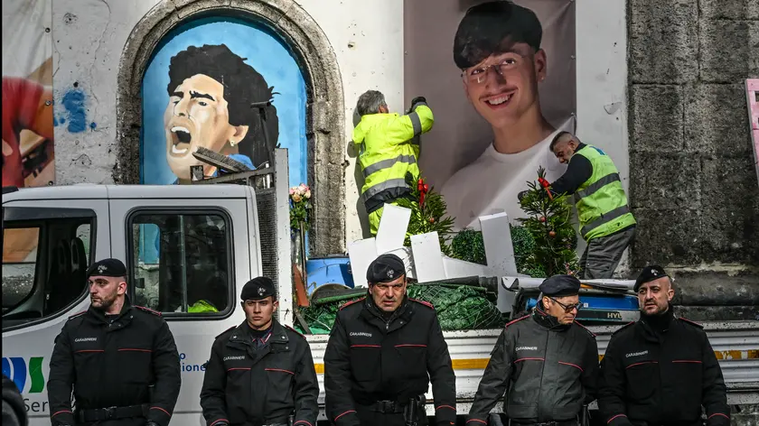 (ANSA) - NAPOLI, 18 DIC - L'altarino rimosso oggi dai carabinieri, eretto sulla parete esterna della chiesa di San Vincenzo del rione Sanità, era dedicato a Emanuele Tufano, il 15enne assassinato a Napoli il 24 ottobre 2024 durante uno scontro tra bande criminali rivali composte da giovani e giovanissimi. Oltre ai fiori ed una cassetta per le "lettere a Babbo Natale" c'erano anche degli addobbi natalizi ed un pannello in polistirolo con il nome del ragazzo, raffigurato in una foto gigante accanto a una effigie raffigurante Diego Armando Maradona. Il giovane era nipote di un elemento di spicco del clan Sequino, Silvestro Pellecchia, che volle vendicare la morte di Tufano anche per riaffermarne la credibilità della cosca nel quartiere Sanità. Su queste basi, secondo le indagini, venne deciso l'omicidio del 20enne Emanuele Durante, ritenuto dai Sequino l'assassino di Tufano: una epurazione interna, in sostanza, perché entrambi i giovani sarebbero stati legati allo stesso clan. Durante venne ucciso in un agguato scattato nel traffico cittadino di Napoli il 15 marzo scorso, mentre era in auto con la fidanzata. A sparargli, per gli investigatori, fu Alexandr Babalyan (oggi destinatario di una misura cautelare ma già detenuto). La rimozione dell'altarino è avvenuta nel corso dell'esecuzione di otto arresti di giovani accusati di porto e detenzione illegale di armi da fuoco aggravati dalle finalità mafiose. I carabinieri, analizzando i video acquisiti dai sistemi di sorveglianza, hanno ricavato dei fermi immagine poi confrontati con le foto presenti sui profili social dei giovani, riscontrando la corrispondenza dei volti. Diverse pistole sono state sequestrate durante le indagini, una delle quali trovata nella sacca di un rider che faceva le consegne. Le misure cautelari in carcere del gip sono state notificate oggi, oltre che al 26enne Babalyan (già detenuto), anche al 24enne Luis Antonio Amodio, al 24enne Gennaro De Marino, a Ciro Esposito, 39 anni, Salvatore La Salvia, 26 anni, a Francesco Pio Massaro, 22 anni, Danilo Peraino, 27 anni e a Ivan Zinzi, 32 anni. (ANSA).