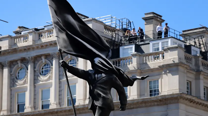 Banksy ricompare con una statua nel cuore di Londra, e sfida l'imperialismo