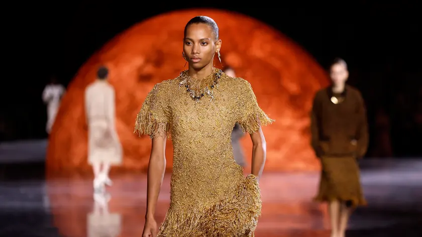 (di Patrizia Vacalebri) (ANSA) - ROMA, 07 OTT - Il nuovo direttore creativo di Chanel, Matthieu Blazy, ha debuttato a Parigi, in chiusura della fashion week francese del pret a porter, sfilando con la sua nuova collezione Primavera/Estate 2026, nel Grand Palais, trasformato in un pezzo di cosmo da un allestimento coreografico di pianeti e satelliti sospesi sulla passerella. L' esordio è stato salutato da un parterre eccezionale che ha premiato in finale lo stilista con una standing ovation. Tra le star presenti, Nicole Kidman, Penélope Cruz, Marion Cotillard, Ayo Edebiri, Vanessa Paradis, Tilda Swinton, Pedro Pascal, Margot Robbie, Kendall Jenner, Anna Wintour. Con la sua prima collezione per Chanel, Blazy ha dimostrato ancora una volta, che il futuro di una maison storica non può essere tracciato, se non guardando al passato e alla storia e all'evoluzione del marchio, ai suoi codici distintivi e alla tradizione, rileggendo tutto con una lente di modernità contemporanea. "Chanel - dice Blazy - parla d'amore. La nascita della modernità nella moda comincia da una storia d'amore. Questo è ciò che trovo più bello. Non ha tempo né spazio; questa è un'idea di libertà. La libertà indossata e conquistata da Gabrielle Chanel". Amore e libertà. Insomma, Blazy ha ricordato che la grande stilista ha cominciato a fare moda e a rompere i codici del vestire delle donne dei primi del secolo scorso, prendendo a prestito la camicia e i pantaloni del suo fidanzato Boy Capel, l'uomo più importante della sua vita. Lo ha fatto per stare comoda e per cavalcare libera, ma è stata una scelta che ha determinato una vera rivoluzione nel guardaroba femminile. Blazy ha voluto rileggere con la sua lente quei capi maschili, la camicia e i pantaloni. E non solo. La camicia di allora era stata realizzata dello storica camiceria francese Charvet. Le proporzioni della nuova camicia aderiscono ancora ai tradizionali standard della camiceria maschile. A questa si aggiungono giacche da tailleur maschili, tagliate e con bordi grezzi. Blazy rilegge anche il tweed e lo modifica, lo rende agile, stirato e deciso. Lo trasforma in una morbida maglia. I tweed sfilacciati sono trattati come griglie e gli intrecci mostrano quanta ricerca e sperimentazione sui materiali è stata fatta dal direttore creativo. Lo stilista guarda anche al paradosso del potere femminile di Gabrielle Chanel, conquistato attraverso un guardaroba in cui la praticità e il pragmatismo non rinunciano mai alla seduzione. L'abbigliamento da giorno di Chanel si muove nel tempo. I classici sono decostruiti, ma sono sempre in movimento con il corpo. Il vero chic è la fluidità scivolosa di gonne e camicie, di pantaloni maschili e giacche tailoring. Le lunghezze degli orli sotto al ginocchio confermano che Blazy punta a un'eleganza non gridata, dove il confine tra genere è sempre più sottile. Gli accessori sembrano oggetti tramandati: la borsa 2.55 è rovinata, schiacciata, con la sua tradizionale fodera in pelle bordeaux esposta; le camelie stropicciate sono parte integrante dei tailleur in seta lavorata a maglia. I gioielli sono perle barocche, pianeti di vetro e catene smaltate. Le calzature presentano una familiare punta a contrasto, con tacchi realizzati per spingere chi li indossa in avanti, verso il futuro. (ANSA).