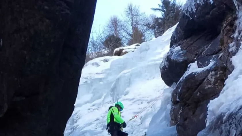 Bloccata su di una cascata di ghiaccio in Piemonte, salvata