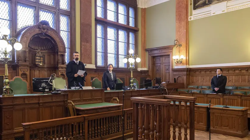 (ANSA-AFP) - BUDAPEST, 04 FEB - La giustizia ungherese ha condannato l'antifascista Maja T. a otto anni di carcere per violenza. Il processo all'attivista tedesca, di 25 anni, è fotocopia di quello a Ilaria Salis. Maja t. è stata accusata insieme a 19 antifascisti europei accusati dall'Ungheria di violenze commesse con manganelli nel 2023 su nove militanti di estrema destra a margine di un raduno neonazista a Budapest. (ANSA-AFP).