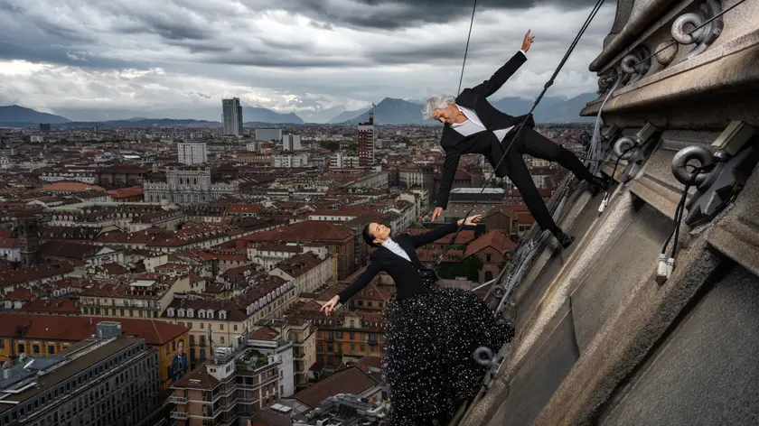 (di Francesco Gallo) (ANSA) - ROMA, 10 NOV - Nessun effetto speciale, tutto vero. Veri Kasia Smutniak e Domenico Procacci appesi a una corda in cima alla Mole Antonelliana, vero l'impacciato Martin Scorsese di fronte a una lettera originale di Méliès, vera Greta Scarano nei panni di Mary Poppins a 167 metri d'altezza e vero, infine, un invecchiato Malcom McDowell con cappotto nero e bastone, con dietro i suoi Drudi rimasti invece giovani. Queste solo alcune delle splendide foto firmate Riccardo Ghirardi che si vedranno da domani a 'Piano sequenza', mostra curata da Domenico De Gaetano, ospitata a Torino da Gallerie d'Italia a Piazza San Carlo fino al 1 marzo 2026. Una vernice realizzata in collaborazione con il Museo Nazionale del Cinema e che arriva in occasione del 25° anniversario del Museo all'interno della Mole Antonelliana che diventa set fotografico dove attori e registi (da Monica Bellucci a Tim Burton fino a Sharon Stone) abitano gli spazi del museo - anche quelli normalmente inaccessibili - "come un lungo piano sequenza" dove architettura, collezione museale, memoria e personaggi del cinema si mescolano. "Mi sono ispirato a 'Una notte al museo' immaginando che questi grandi personaggi prendessero vita durante la notte", dice all'ANSA Riccardo Ghilardi che dal 2011 fa parte del team di ritrattisti dell'agenzia Contour by Getty Images di New York. Gli artisti fotografati in ordine alfabetico tranne i già citati sono: Mathieu Amalric, Artem, Bérénice Bejo, Barbara Bouchet, Tim Burton, Massimiliano Caiazzo, Damien Chazelle, Matilda De Angelis, Tonino De Bernardi, Willem Defoe, Silvia D'Amico, Xavier Dolan, Rupert Everett, Asghar Farhadi, Isabella Ferrari, Alessandro Gassmann, Giancarlo Giannini, Peter Greenaway, Michel Hazanavicius, Ron Howard, Pablo Larraín, Luca Marinelli, Giovanna Mezzogiorno, Paola Minaccioni, Terry Notary, Ruben Östlund, Barbara Ronchi, Rosa Diletta Rossi, Zoe Saldana, Greta Scarano, Paul Schrader, Kasia Smutniak, Kevin Spacey, Vince Vaughn e Carlo Verdone. Giovanna Mezzogiorno nel progetto veste i panni di Maria Adriana Prolo, fondatrice del Museo Nazionale del Cinema, e presta la sua voce e la sua presenza come narratrice al bel documentario di backstage 'Piano sequenza, La Mole' di Cristian Berna e Rocco Giurato, che sarà proiettato parzialmente all'interno della mostra per poi approdare integrale su RayPlay nel 2026. L'intero progetto fotografico e narrativo è raccolto ne "Il tempio del cinema", edito da Allemandi e curato da Carlo Chatrian, direttore del Museo Nazionale del Cinema. "La disponibilità dei talent in questo progetto durato tre anni è stata meravigliosa, far venire a Torino Dafoe che stava girando a Vienna, per fargli interpretare Fredersen di 'Metropolis', non è stato certo facile e vedere un mostro sacro come Scorsese emozionarsi come un ragazzino o Sharon Stone indossare l'abito di Ingrid Bergman di 'Matter of Time' è stata una cosa da piangere", continua Ghilardi. "Gli scatti che sicuramente affascinano di più lo spettatore sono quelli sospesi, chiamiamoli 'sospesi' perché sono fuori la Mole - dice infine Rocco Giurato coregista di 'Piano sequenza, La Mole' - , però da amante del cinema, quello che mi ha fatto venire veramente la pelle d'oca è stato Dafoe che, dopo aver superato la claustrofobia , si è fermato davanti uno dei tanti oblò della cupola, ha alitato sul vetro e poi ha pulito con la mano: era entrato in trance recitativa, davvero un momento stupendo". (ANSA).