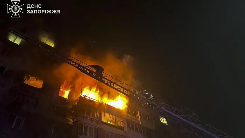 Drone su abitazione a Zaporizhzhia, tre feriti e un incendio