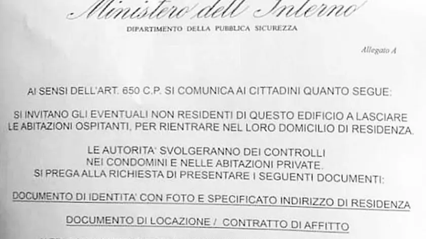 Falso avviso ministero dell'Interno per allontanare gente da casa