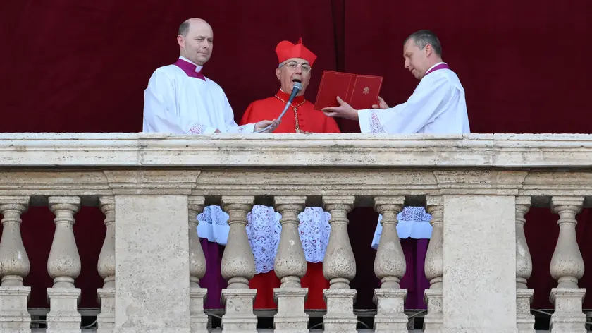 (ANSA) - ROMA, 08 MAG - E' stato accolto da un boato della folla - oltre centomila persone - radunata a San Pietro l'apertura della Loggia delle Benedizioni che ha annunciato il nuovo Papa Leone XIV: c'è stato quindi silenzio per ascoltare le parole del cardinale protodiacono Dominique Mamberti che ha pronunciato l'Habemnus Papam. (ANSA).