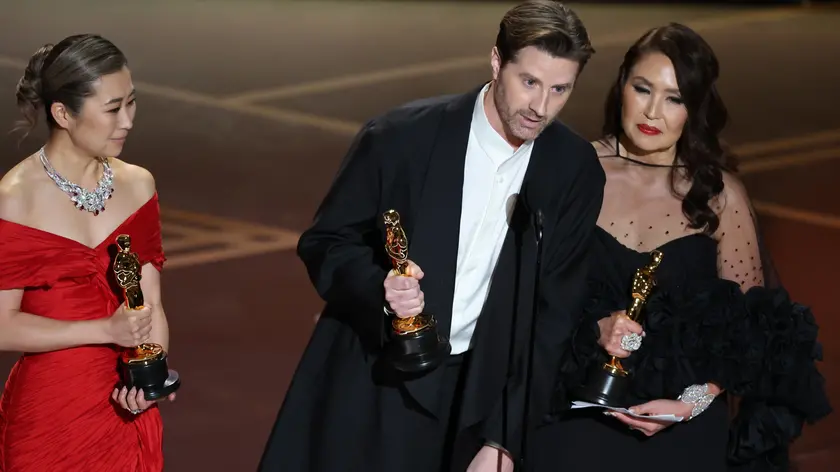 (ANSA) - ROMA, 16 MAR - L'Oscar come miglior film animato alla 98/a edizione degli Academy Awards va a KPop Demon Hunters. Lo ritirano Maggie Kang, Chris Appelhans e Michelle Wong. (ANSA).